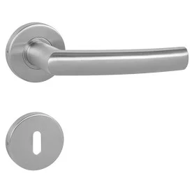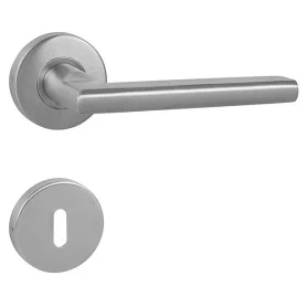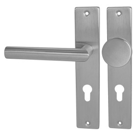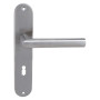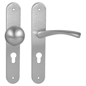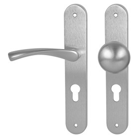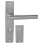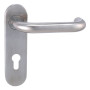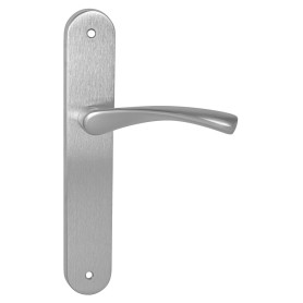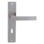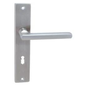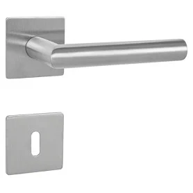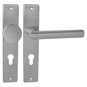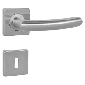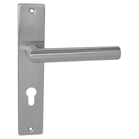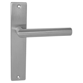 Štítová kľučka z nehrdzavejúcej ocele s hranatým štítom 42 × 218 mm. Odolná kľučka testovaná podľa ČSN EN 1906:2012.